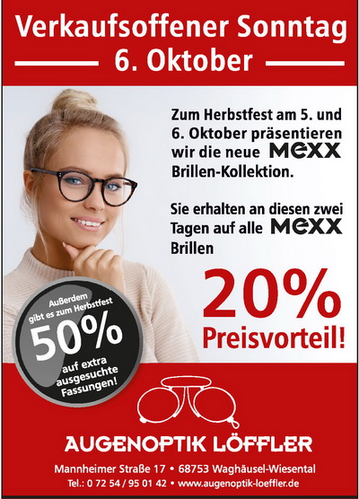 sowie ausgesuchte Brillen und Sonnenbrillen mit 50% Kerwerabatt.